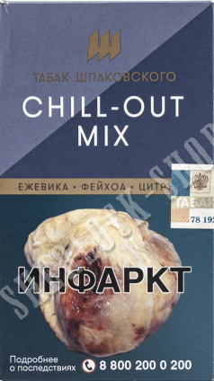 На нашем официальном сайте sherlock-shops.com вы найдете основной каталог продукции - Кальяны, уголь, табаки, расходники реализуемой в сети магазинов работающих под франшизой «Sherlock». Если Вы хотите приобрести товар: Кальянный Табак Шпаковского Chill-Out Mix 40 г, по самой доступной цене, тогда добро пожаловать в наши фирменные магазины «Sherlock».
