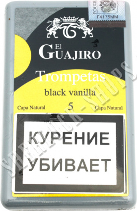 На нашем официальном сайте sherlock-shops.com вы найдете основной каталог продукции - Сигариллы реализуемой в сети магазинов работающих под франшизой «Sherlock». Если Вы хотите приобрести товар: Сигариллы El Guajiro Trompetas Black Vanilla (5 шт), по самой доступной цене, тогда добро пожаловать в наши фирменные магазины «Sherlock».