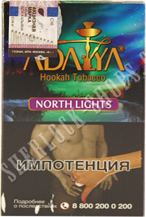 На нашем официальном сайте sherlock-shops.com вы найдете основной каталог продукции - Кальяны, уголь, табаки, расходники реализуемой в сети магазинов работающих под франшизой «Sherlock». Если Вы хотите приобрести товар: Табак ADALYA North Lights 35 г, по самой доступной цене, тогда добро пожаловать в наши фирменные магазины «Sherlock».