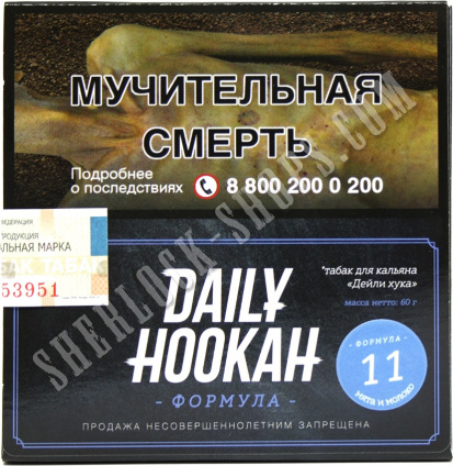 На нашем официальном сайте sherlock-shops.com вы найдете основной каталог продукции - Кальяны, уголь, табаки, расходники реализуемой в сети магазинов работающих под франшизой «Sherlock». Если Вы хотите приобрести товар: Табак для кальяна DAILY HOOKAH Мята и Молоко Формула 11 60 г, по самой доступной цене, тогда добро пожаловать в наши фирменные магазины «Sherlock».