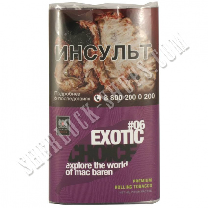 На нашем официальном сайте sherlock-shops.com вы найдете основной каталог продукции - Табак реализуемой в сети магазинов работающих под франшизой «Sherlock». Если Вы хотите приобрести товар: Табак MAC BAREN Exotic Choice 40 г, по самой доступной цене, тогда добро пожаловать в наши фирменные магазины «Sherlock».