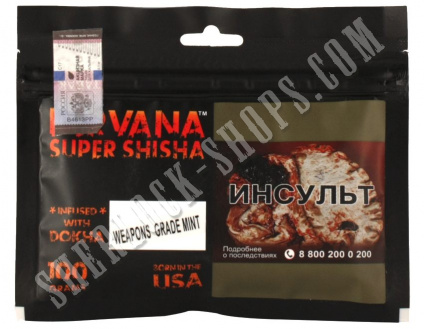 На нашем официальном сайте sherlock-shops.com вы найдете основной каталог продукции - Кальяны, уголь, табаки, расходники реализуемой в сети магазинов работающих под франшизой «Sherlock». Если Вы хотите приобрести товар: Табак NIRVANA Weapons Grade Mint 100 г, по самой доступной цене, тогда добро пожаловать в наши фирменные магазины «Sherlock».