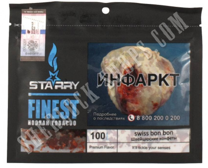 На нашем официальном сайте sherlock-shops.com вы найдете основной каталог продукции - Кальяны, уголь, табаки, расходники реализуемой в сети магазинов работающих под франшизой «Sherlock». Если Вы хотите приобрести товар: Табак STARRY Swiss Bon Bon 100 г, по самой доступной цене, тогда добро пожаловать в наши фирменные магазины «Sherlock».