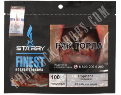 На нашем официальном сайте sherlock-shops.com вы найдете основной каталог продукции - Кальяны, уголь, табаки, расходники реализуемой в сети магазинов работающих под франшизой «Sherlock». Если Вы хотите приобрести товар: Табак STARRY Tropicana 100 г, по самой доступной цене, тогда добро пожаловать в наши фирменные магазины «Sherlock».