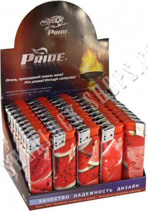 На нашем официальном сайте sherlock-shops.com вы найдете основной каталог продукции - Зажигалки, спички, пепельницы реализуемой в сети магазинов работающих под франшизой «Sherlock». Если Вы хотите приобрести товар: Зажигалка PRIDE E-106 Watermelon/aroma, по самой доступной цене, тогда добро пожаловать в наши фирменные магазины «Sherlock».